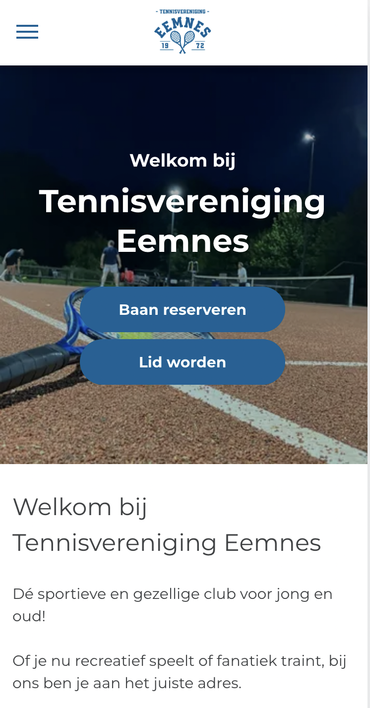 De site is nu overzichtelijker ingedeeld, met duidelijke menu’s zoals Algemeen, Lidmaatschap, Training, Het Paviljoen, Competitie & toernooien en Sponsors. Zo vind je sneller wat je zoekt: van info over de trainers en jeugdprogramma’s tot details over de clubkleding, bardiensten en baanreservering.